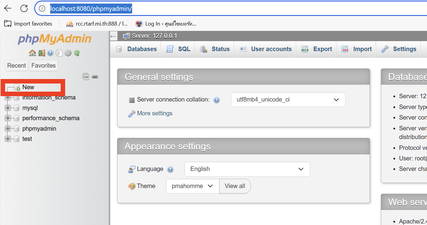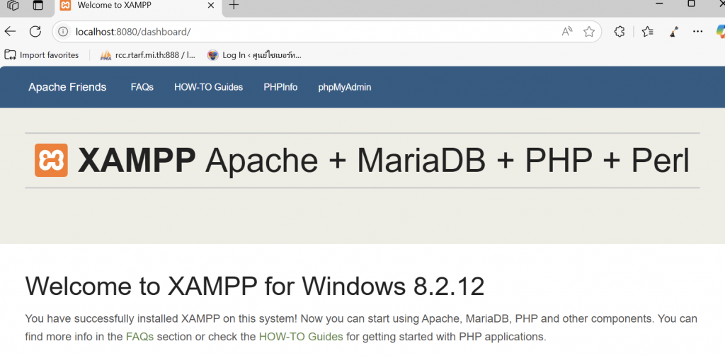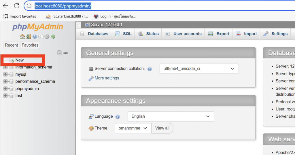 ถ้ามันเข้าหน้า phpmyadmiืn ไม่ได้ ลองพิมพ์ http://localhost:8080/phpmyadmin/