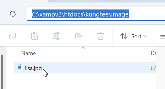 12.1 สร้างโฟลเดอร์ image สำหรับเก็บรูปภาพขึ้นมาในhtdocs แล้วโฟลเดอร์ของเราดังภาพ
