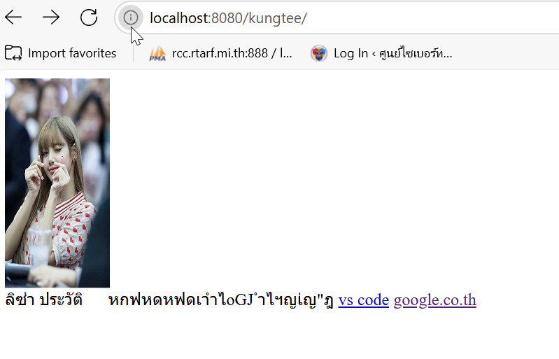 <html> <meta charset="UTF-8"> <title> <!--แสดงบน tab บน browser แสดงว่าหน้านั้นคืออะไรกำลังเปิดหน้าอะไรอยู่--> สวัสดี </title> <head> <!--css เป็นไฟล์สำหรับแสดงผลความสวยงามการจัด object ให้มี design ที่ต้องการ--> <!--java script เป็นไฟล์สำหรับใช้คำสั่งให้เว็บทำงานได้ตามต้องการเช่นการ alert การตรวจสอบ object --> </head> <body> <!--แสดงผลตรง content ในหน้าจอ--> <!--สร้าง tag img แสดงภาพ และ ปรับขนาดโดยใช้ style กำหนด height ความสูง และ width ความกว้าง--> <img src="image/lisa.jpg" style="height: 200px; width: 100px;"> <br> <!-- สำหรับเว้นบรรทัด--> ลิซ่า ประวัติ <!-- สำหรับวรรคมากกว่า 1 เคาะ--> หกฟหดหฟดเาำไoGJ ำไฯญเ่ญ"ฎ <!--ถ้าต้องการให้มีการ download file จะต้องเอาไฟล์ไปไว้บน server htdocs แล้วใช้ tag <a href="ตามด้วยไฟล์" >ชื่อไฟล์</a> <a ใช้สำหรับทำเมนู ทำ linkไปยังหน้าอื่นๆ หรือทำเป็น link กด download file ได้ ถ้าอยากให้ tag a link หน้าใหม่(เปิดหน้าใหม่) ใช้ target="_blank" --> <a href="download/vscode.exe" >vs code</a> <a href="http://google.co.th" target="_blank">google.co.th</a> </body> </html>13. การใช้งาน wordpress