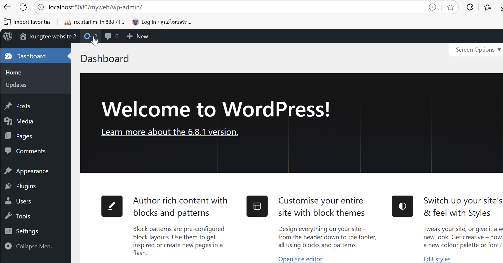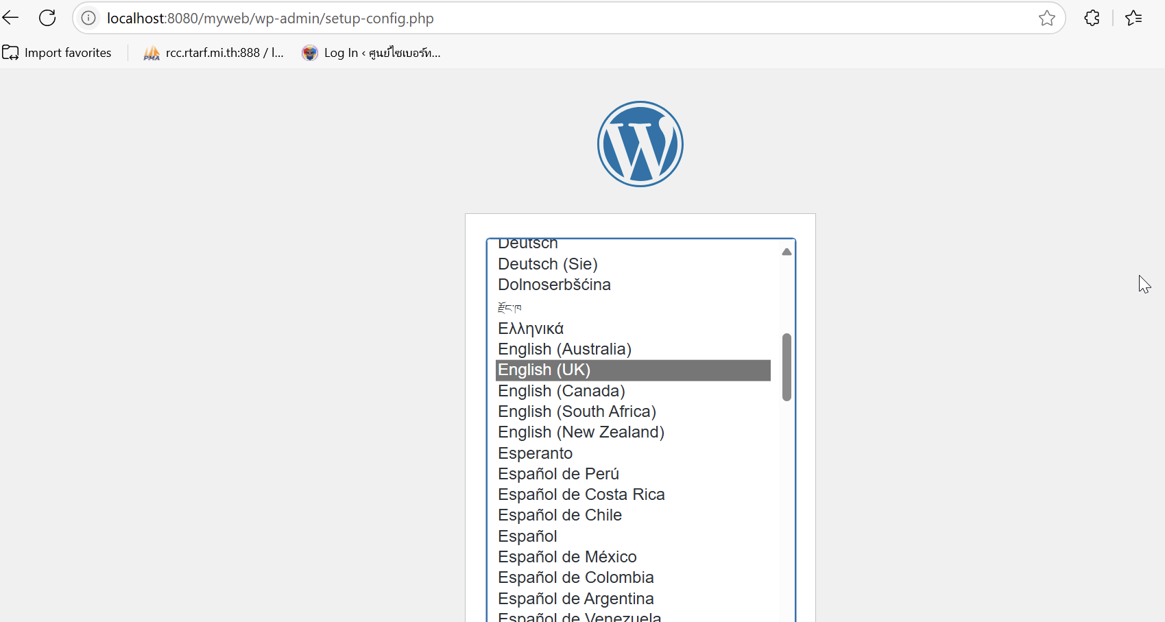 13.3 ติดตั้ง wordpress โดยเปิด browserขี้นมาแล้วพิมพ์ http://localhost:8080/myweb