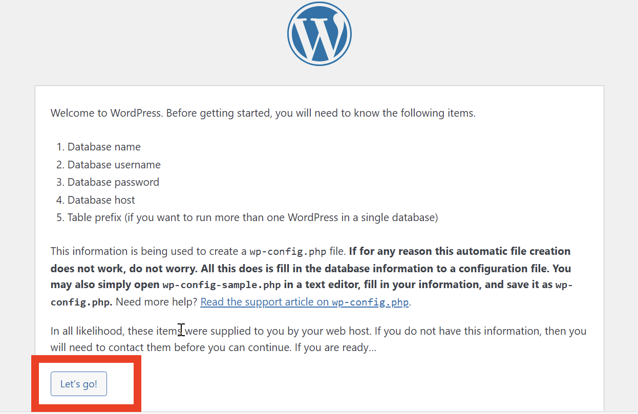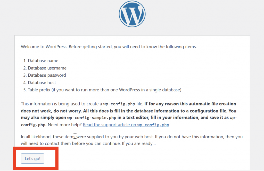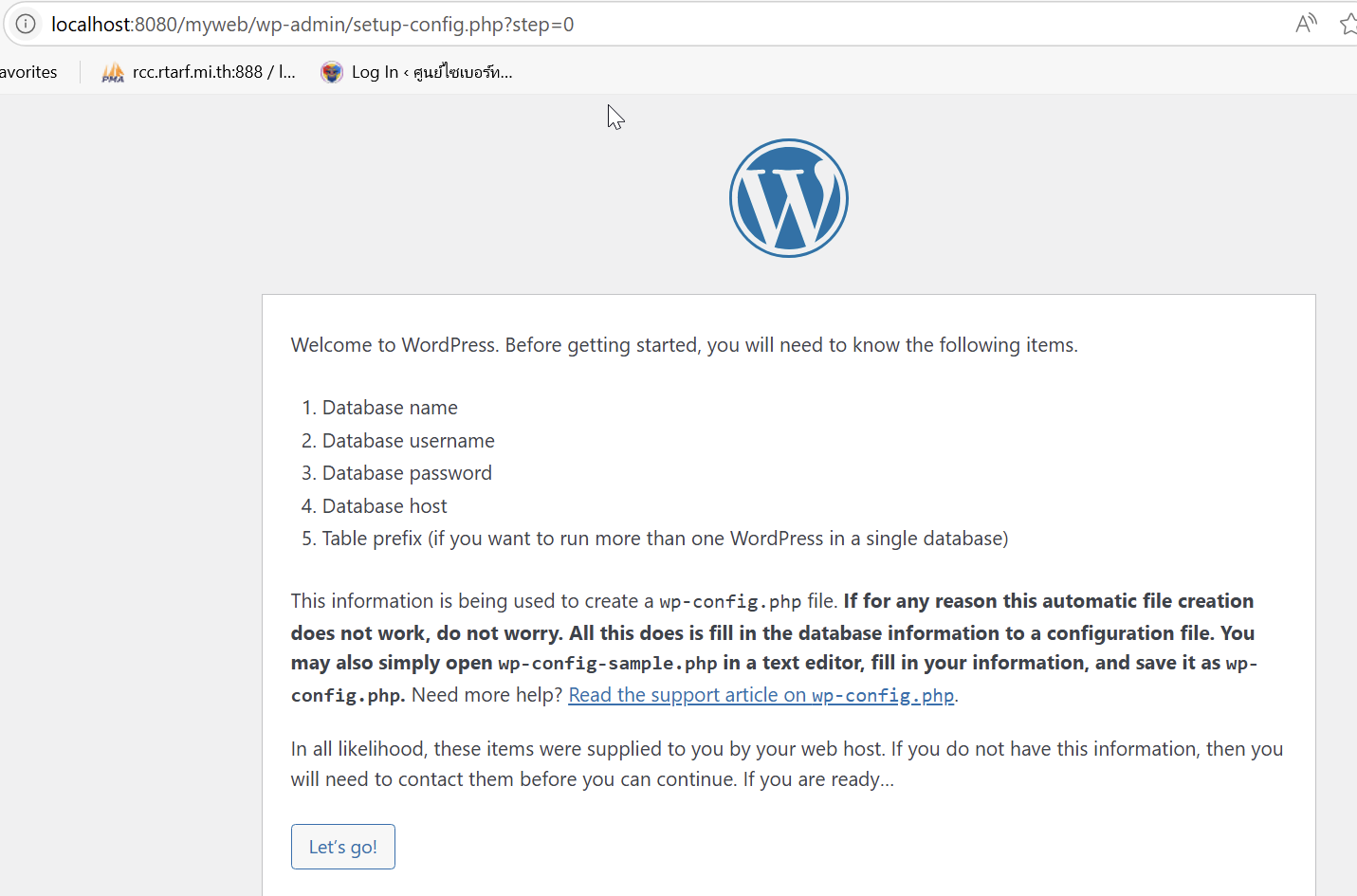 13.4 กลับมาหน้าติดตั้ง wordpress อีกครั้ง ให้กด let’s go
