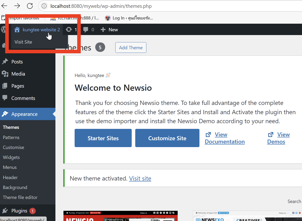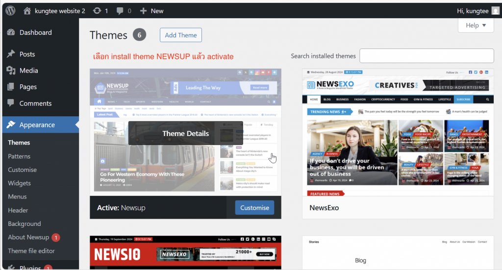 เลือกtheme ที่ต้องการ แล้วกด install หลังจากนั้นกด activate