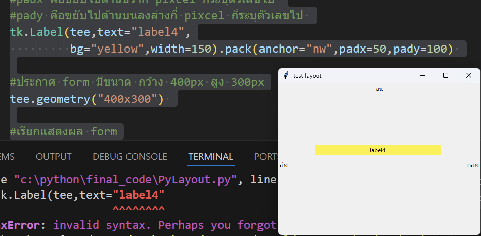 #pady คือขยับไปด้านบนลงล่างกี่ pixcel ก็ระบุตัวเลขไป