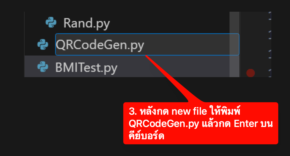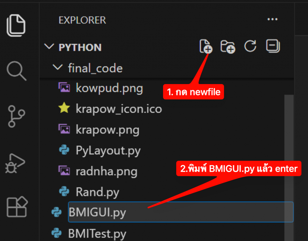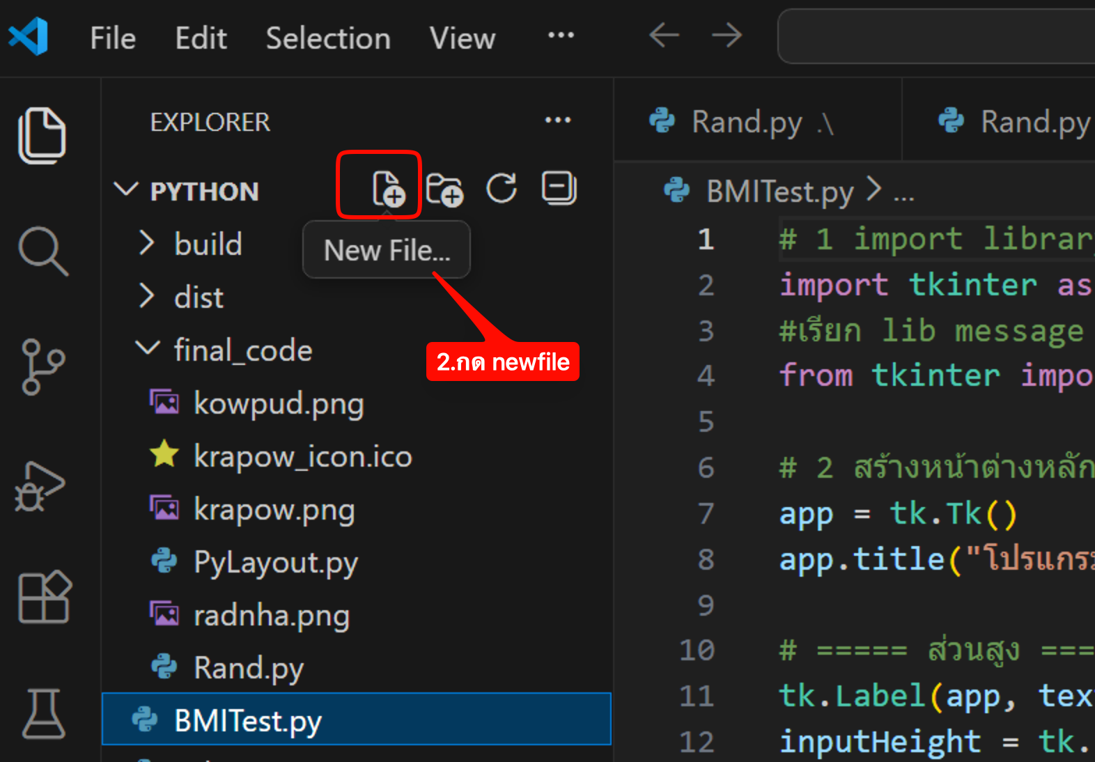 - กดสร้างไฟล์ใหม่ ตั้งชื่อ BMIGUI.py
