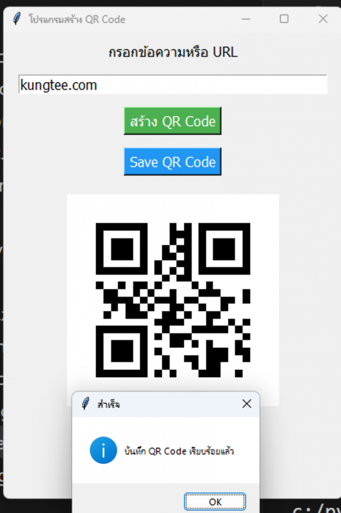 messagebox.showinfo("สำเร็จ", "บันทึก QR Code เรียบร้อยแล้ว")