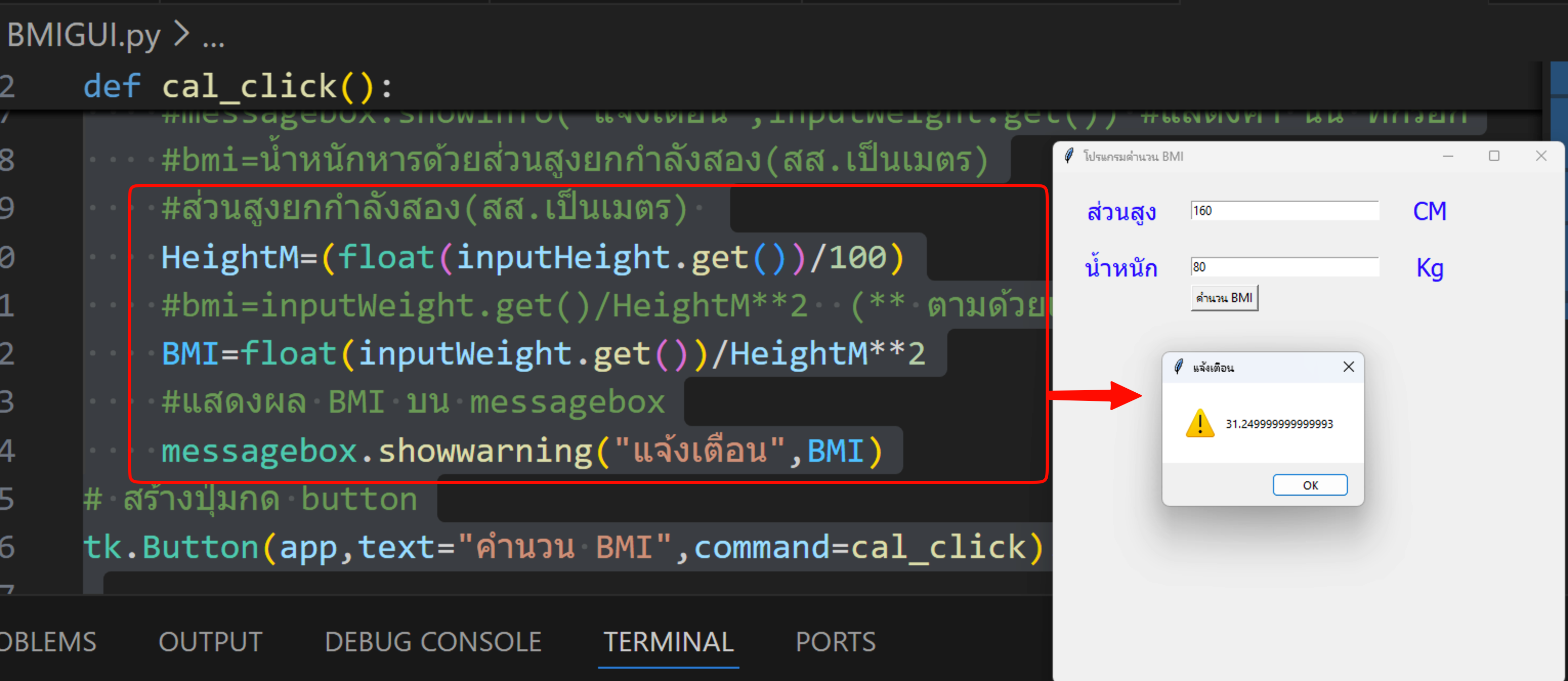messagebox.showwarning("แจ้งเตือน",BMI)