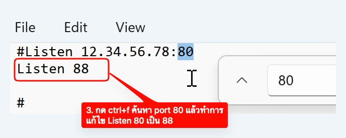 แล้วกดค้นหาอีกจะเจออีกที่ด้านล่างก็แก้ไขจาก 80 เป็น 88