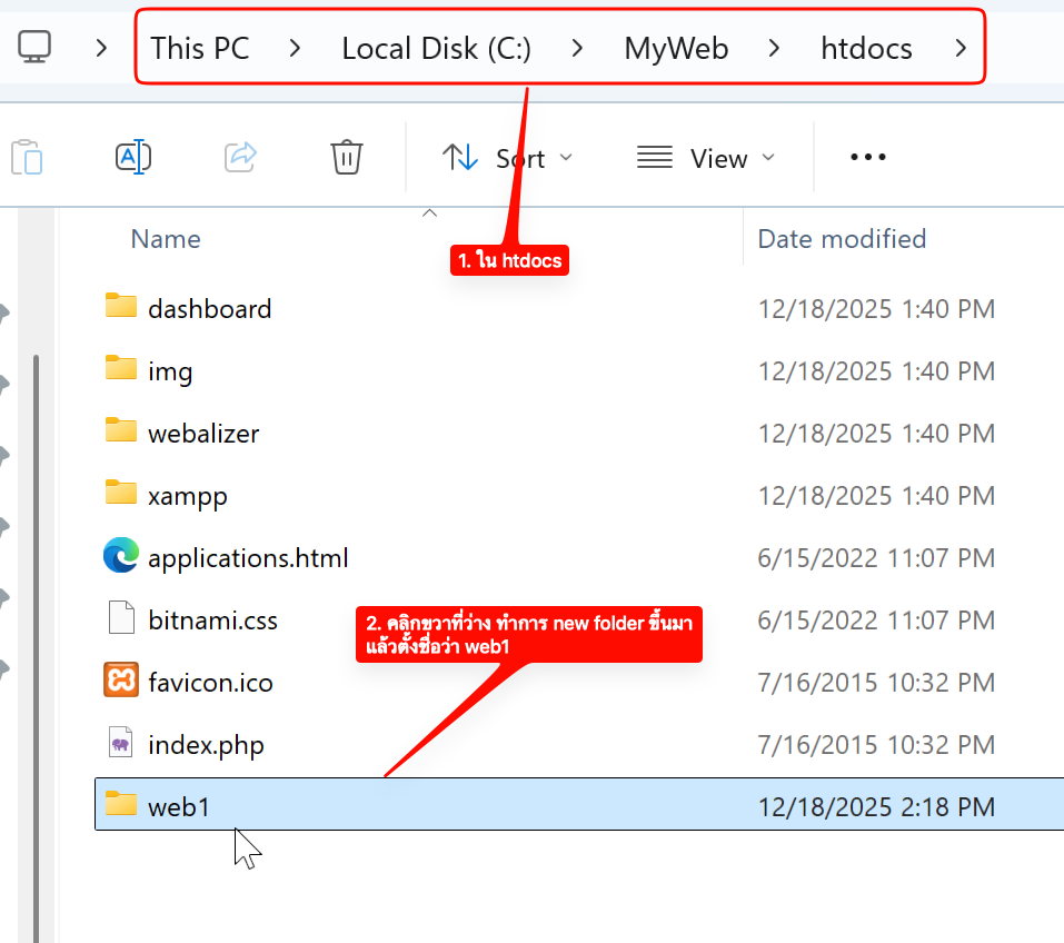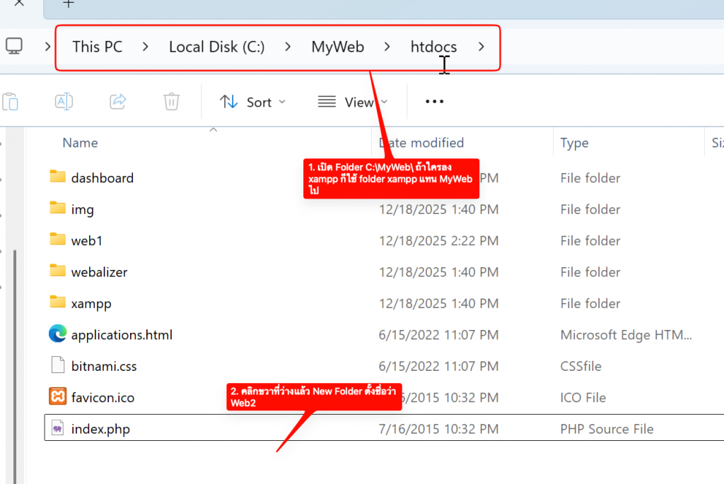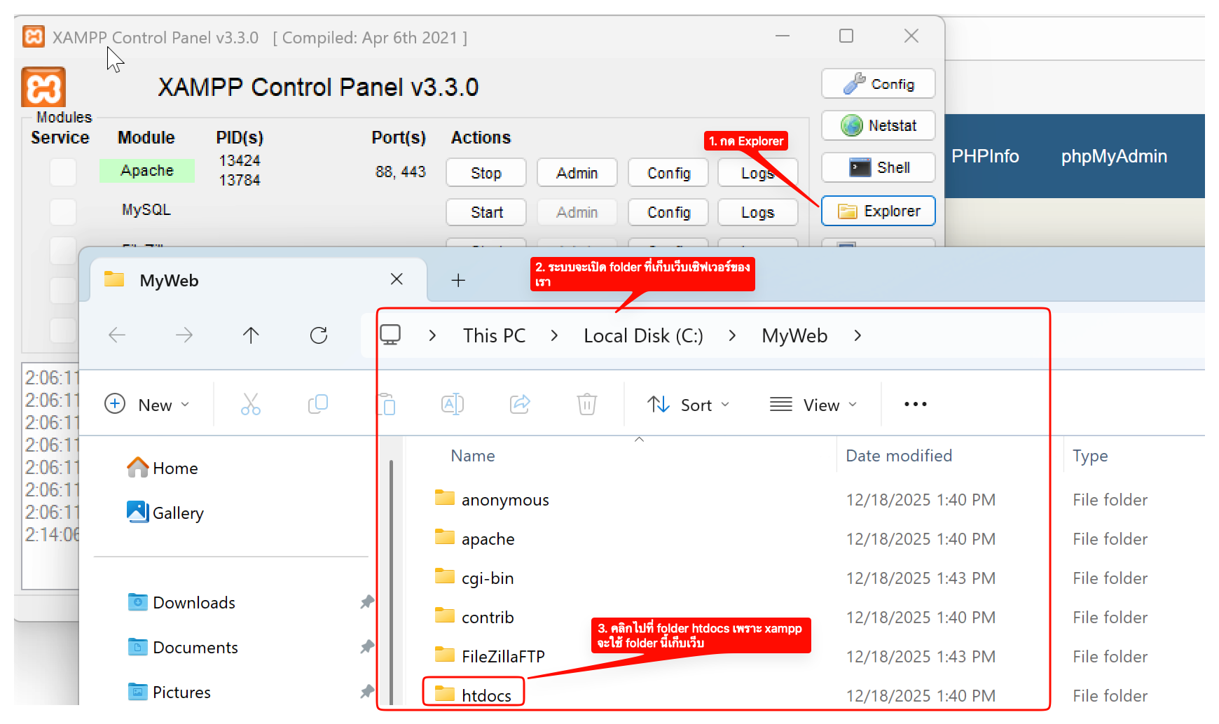 - สร้างไฟล์ web ของเรา โดยไปที่ xampp control ตามภาพ