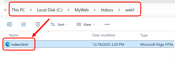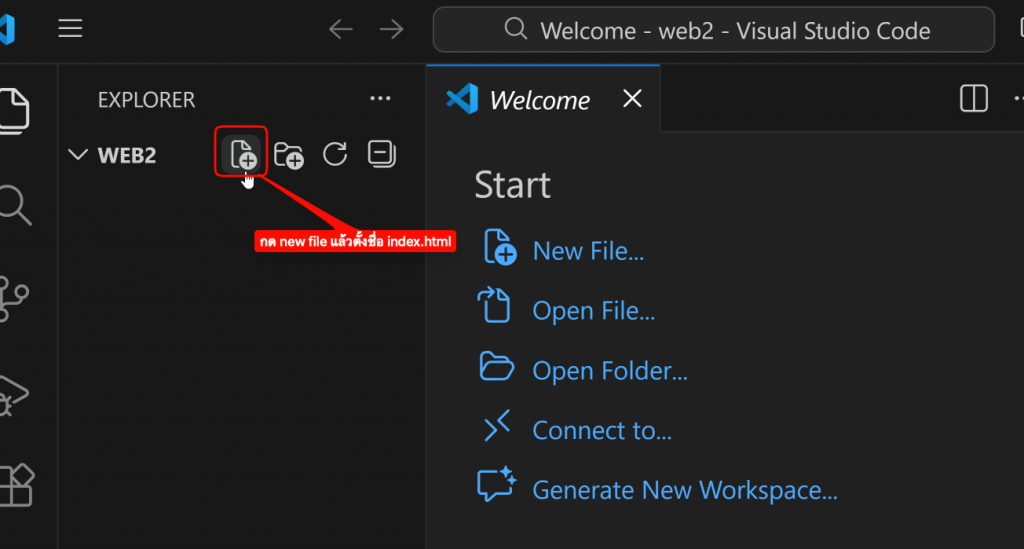 กดเข้าไปที่ web1 คลิกขวาแล้วสร้างไฟล์ index.html