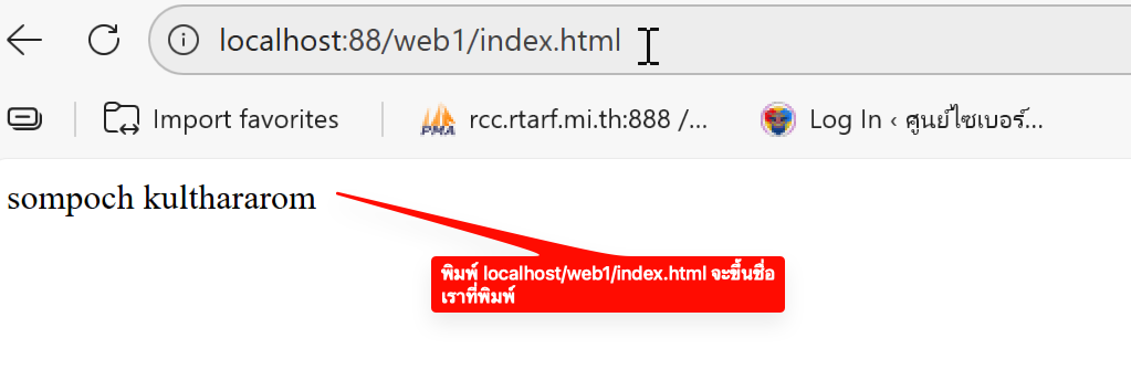 - แล้วกด save แล้วลองเปิด browser แล้วพิมพ์ localhost/web1