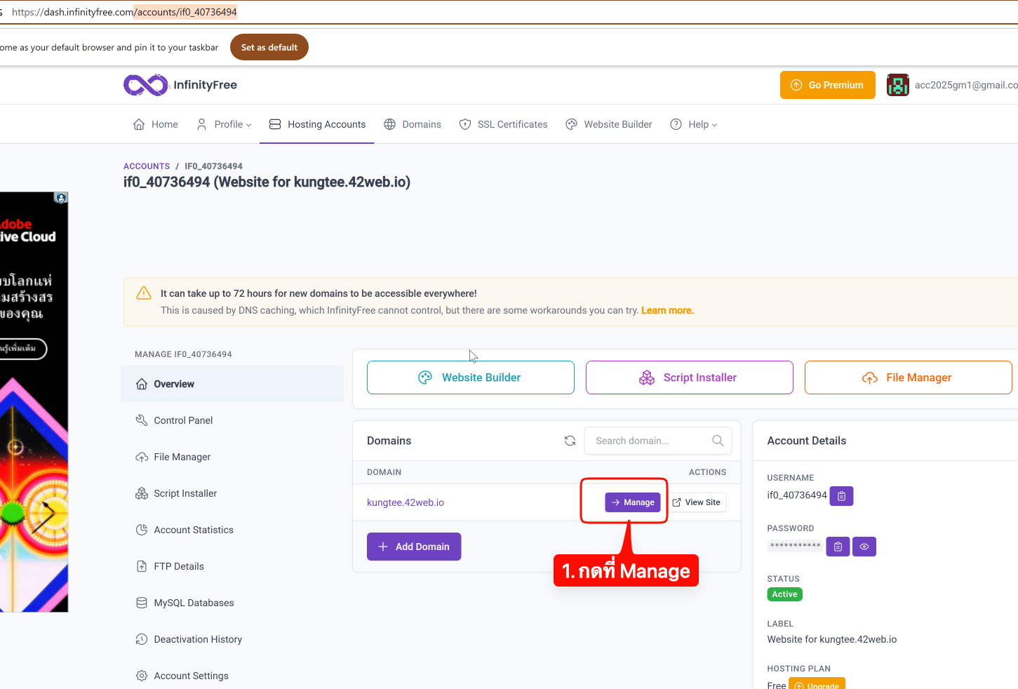 - สมัคร web hosting Free https://www.infinityfree.com/