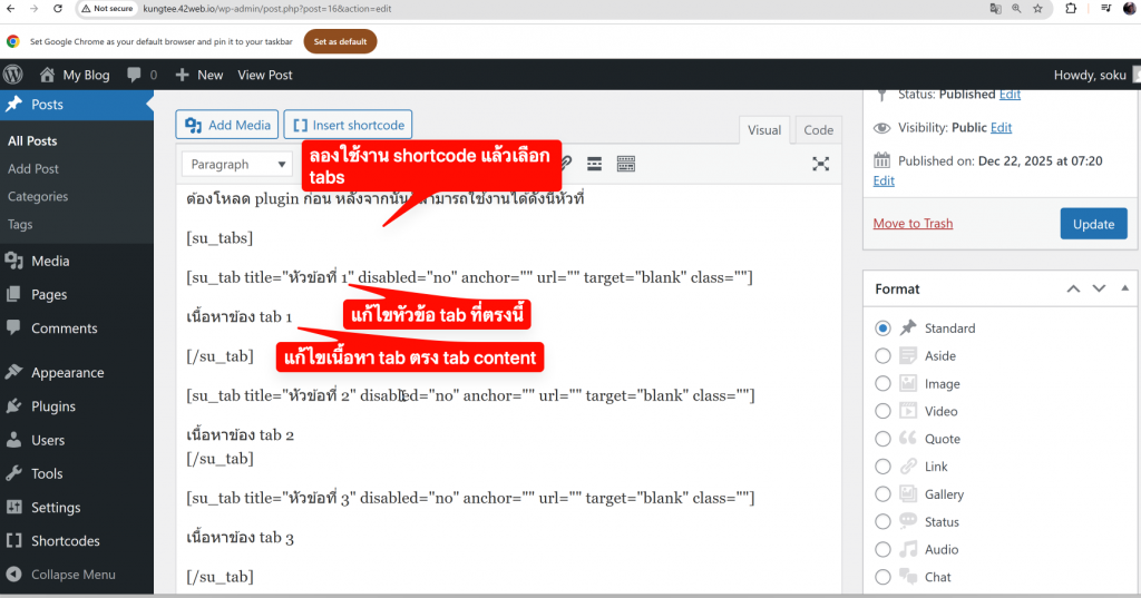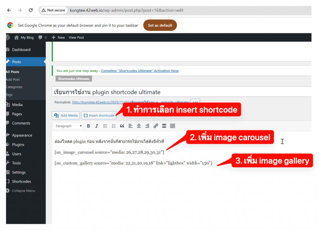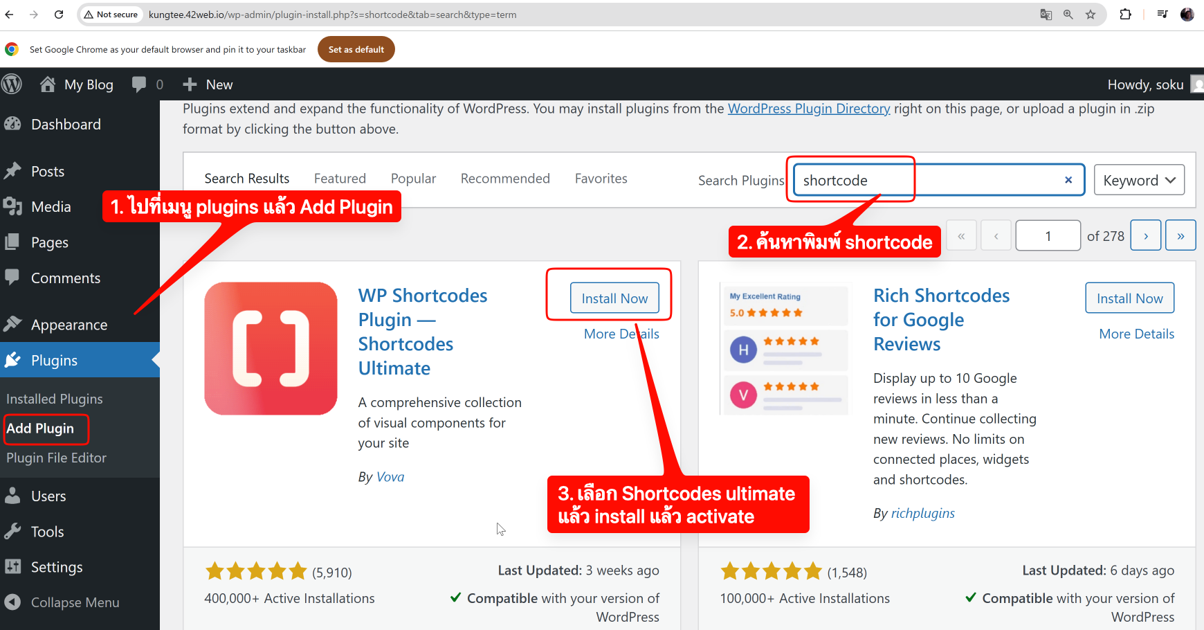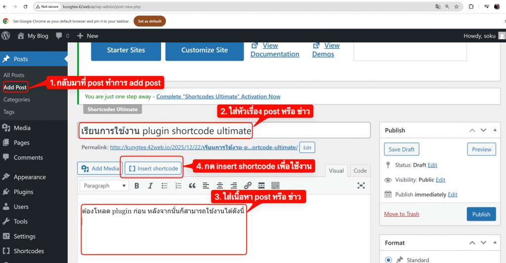 - เพิ่ม plugin ที่ช่วยเพิ่มลูกเล่นในการ post เช่น shortcode ultimate
