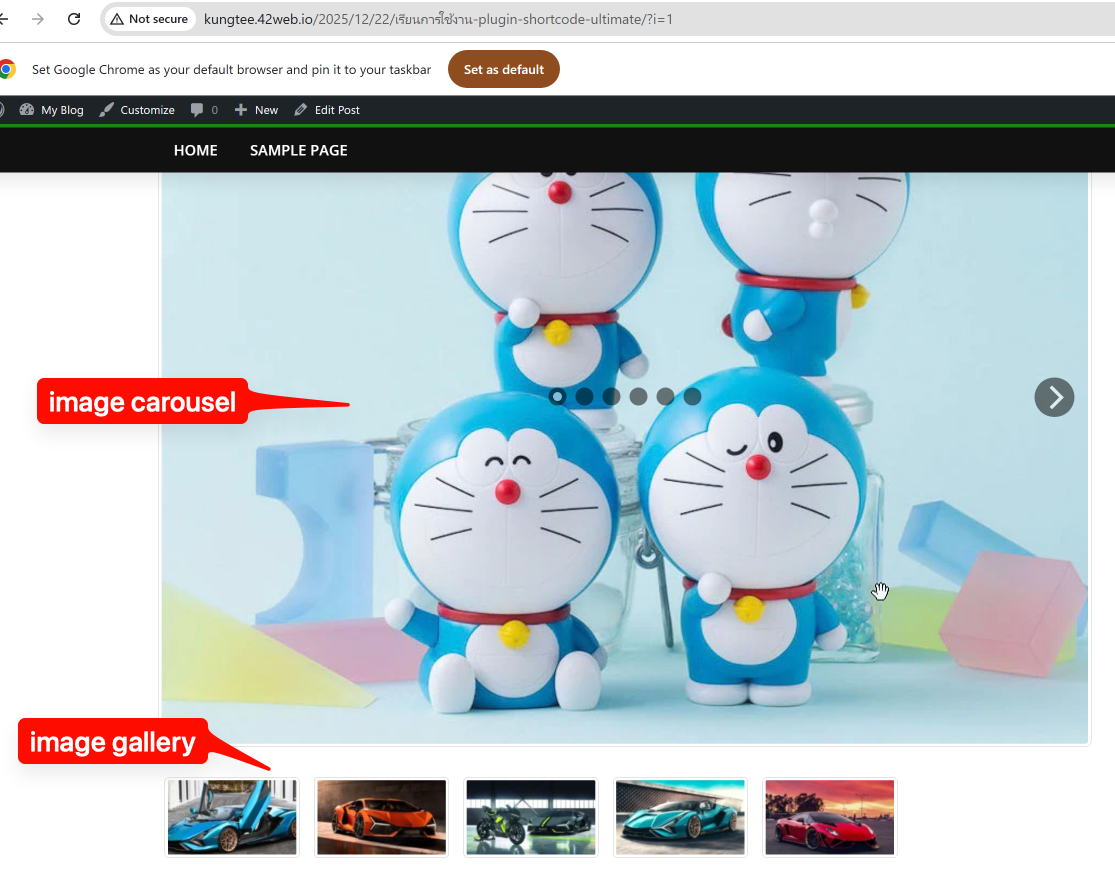 - ลองใช้ short codeuntimate เช่น image carousel กับ image gallery