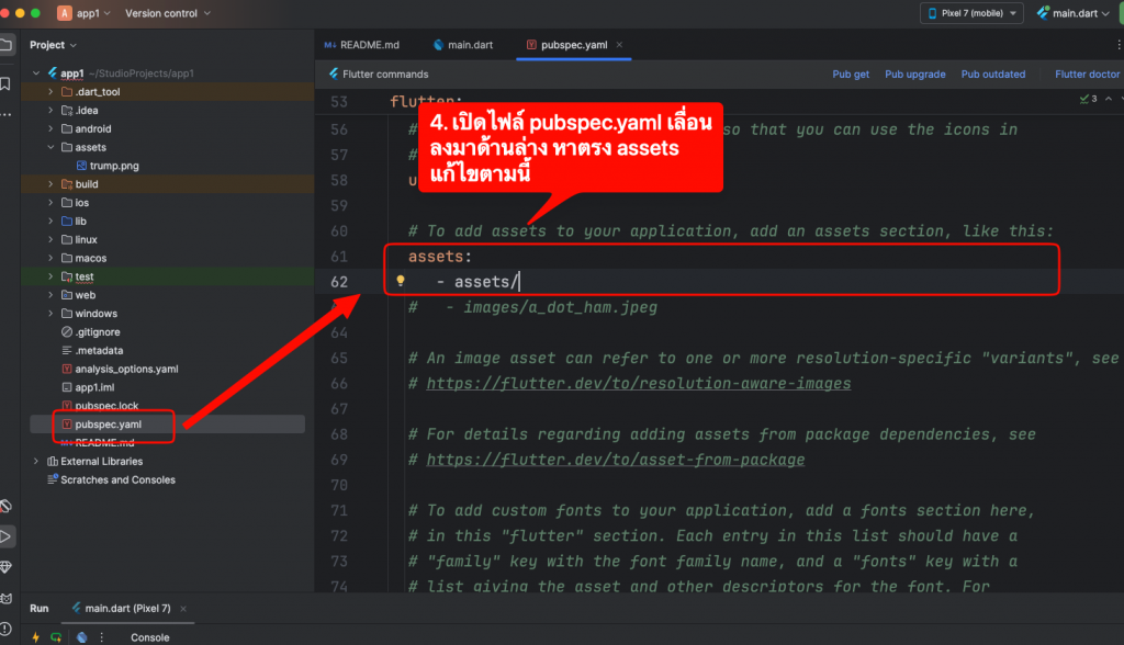 ไปแก้ pubspec.yaml