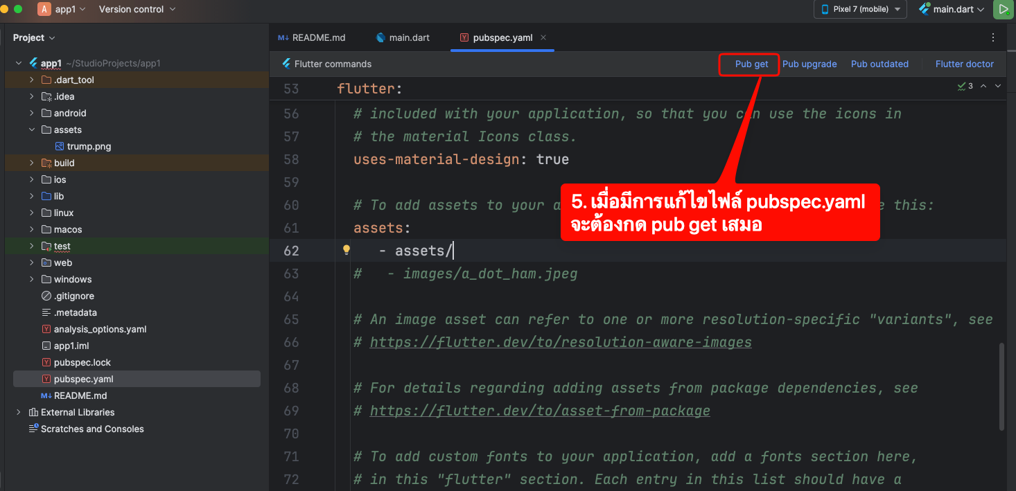 ไปแก้ pubspec.yaml