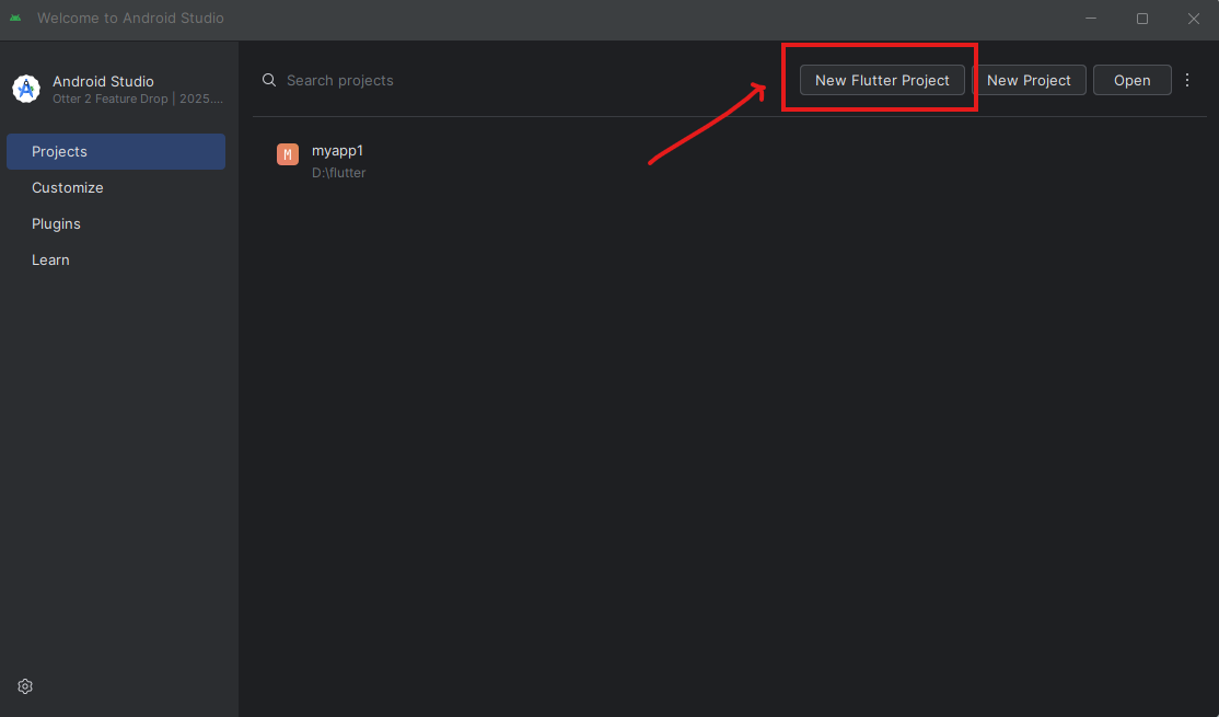 - เปิด Android Studio กดปุ่ม new project (กรณีหาปุ่มไม่เจอให้กลับมาหน้าแรก โดยเลือก menu file แล้ว close project ก่อน)